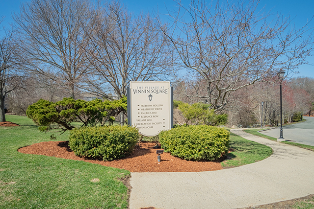 Luxury, single level living welcomes you at Village at Vinnin Square. Highly sought after & rarely available, this updated, tastefully decorated condo is located in brick, mid-rise building that is easily accessible through attractive common lobbies and elevator to the 2nd floor unit and to parking garage below. Once in the unit, the entry hall has coat closet and utility room for HVAC & hot water tank, leading to stunning kitchen w/ upgraded cabinetry, granite counters, breakfast bar and stainless steel appliances. Kitchen looks into open floor plan dining/ living room w/hardwood floors and fireplace. From living room, step to private balcony overlooking wooded nature reserve. Primary bedroom has en-suite bathroom w/ shower & 2 large closets, one walk-in. Second bedroom is good size w/ large closet; second bath has tub/ shower; full-sized washer and dryer. One-car garage parking and storage unit next to the space. Enjoy community pool & tennis courts.